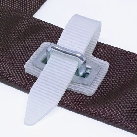 Самым распространенным вариантом крепления мягких окон является скоба с силиконовым ремешком. Данный вид крепления завоевал широкое применение благодаря небольшой стоимости и удобством использования. Такую фурнитуру выбирают как на все стороны, так и для того чтобы удешевить - на все стороны за исключением верхней, на которой устанавливаются оцинкованные люверсы.